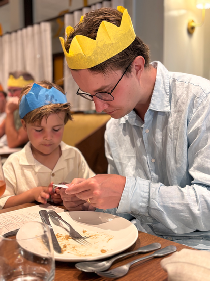 Ondertussen zijn we weer wat afgezakt naar de Gold Coast en spenderen we de laatste dagen van 2025 hier aan het strand met een kleine uitstap naar Bluey's World. Ik hoop dat de jongens dit helemaal awesome gaan vinden (niet alleen omdat het hartstikke duur is) maar als iets Australië voor hen ademt dan is het Bluey wel. Sep heeft Australië ook echt maandenlang Bluey land genoemd. Ik heb het idee dat het ze een gevoel van veiligheid gaf. Bluey kennen ze en het idee dat ze naar het land gingen waar Bluey ook woont (ook al is het een tekenfilm) maakte het makkelijker te begrijpen. Toen ik er dus achterkwam dat er een heuse Bluey World is, moesten we hier natuurlijk heen. Helaas hebben we er geen leuke foto's of filmpjes van want dat mocht daar niet, maar het was echt epic. Het is een soort toneelstuk waar je doorheen loopt en de kamers zijn precies zoals in de serie. Onwijs leuk gedaan en de jongens hebben een uur lang alleen maar in awe rond gekeken en meegedaan met de zoektocht naar Floppy (Bingo's knuffel). De dag werd alleen maar beter toen we besloten om, in plaats van terug te rijden naar ons vakantiehuisje, weer naar Street Beach te gaan met de ferry. Want op de heenreis zaten we in de Bingo boot en op de terugweg in de Bluey boot - a double rainbow if you will, want er is maar 1 Bingo en 1 Bluey boot.
